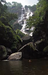 It was hot and muggy and we were dragging a bit. We were not allowed to swim at the bottom of the middle waterfall, and when we were at the upper one I wasn't particularly inclined to. But now it was warmer, we were on the way down, and the sun periodically came out. I thought about skinny dipping but it didn't seem appropriate. I switched to my swimsuit and splashed in. Boy, was that refreshing!