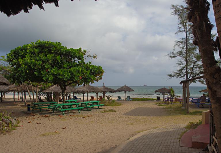 Dona had made us reservations at Kipepeo Beach Village, a place on the beach on the south side of Dar es Salaam. We had a heck of a time finding the place; the main road was torn up so we had to detour. But like all good Tanzanian road matters, whoever was responsible didn't put up any signs. You were just supposed to know your way around. We went back and forth, asked about fifteen people which way to go — half said one way, half said the other. The main problem was a huge oil refinery and a military base, and we needed to be on the other side of them. It was right there but you couldn't get there from here. We finally made it, then I got a traffic ticket for doing 58 km / hr in a 50 km / hr zone. Of course, no one else was going too fast, just me. Uh-huh.