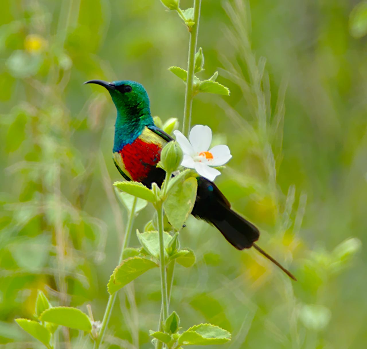 There was also a mixed flock of Fischer's Lovebirds, Superb Starlings, and Buffalo Weavers, along with an occasional Beautiful Sunbird. Talk about an explosion of color!